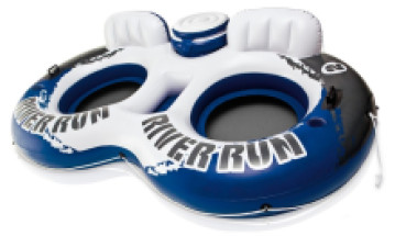 Have fun relaxing and floating in the pool or at the lake with the Intex River Run™ II inflatable water tube. Designed with two lounges that are interconnected and a large built-in cooler with lid, this lounge is perfect to float with a friend. The built-in backrests provide easy cruising and a mesh bottom keeps you cool. This fun lounger has five air chambers for added safety, and two built-in cup holders to keep your refreshments nearby as you relax in the water. easy to use connectors are included for fastening it to other Intex River Run™ floats. An all-around grab rope and two heavy-duty grab handles are included for ease of use.